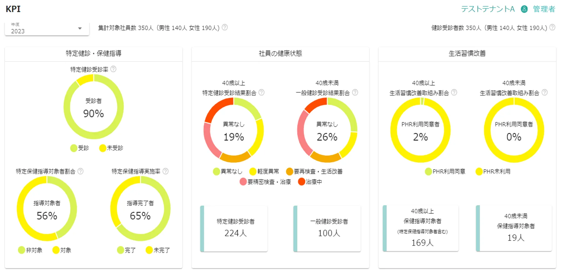 PHRデータで生活習慣改善の取り組み状況をモニタリングし、健診結果の変化を経年で可視化することができます。これにより、従業員の実際の健康状態の変化の評価が可能です。