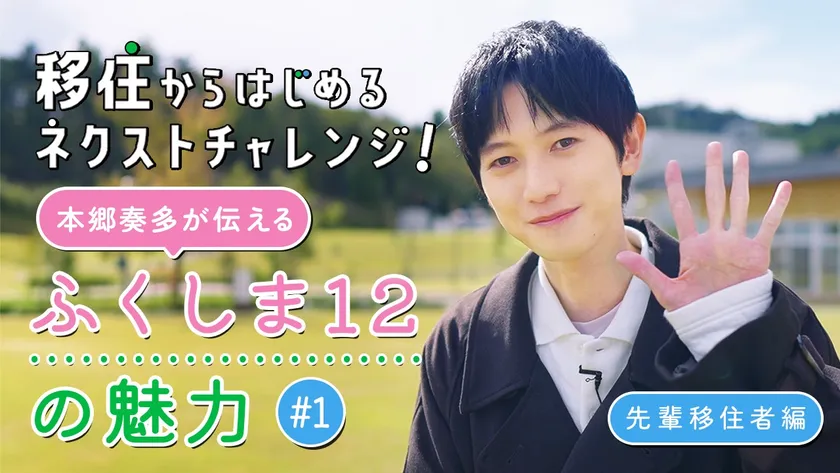 (公財)福島イノベーション・コースト構想推進機構が運営する「ふくしま12市町村移住支援センター」は、福島12市町村の現状と移住地としての魅力を広く伝えるため、テレビドラマ『姪のメイ』で主演を務めた本郷奏多さんを起用し、“ふくしま12市町村への移住”をキーワードに現地を巡るドキュメントムービーを“先輩移住者”“グルメ”“先端技術”の3つのテーマで作成しました。