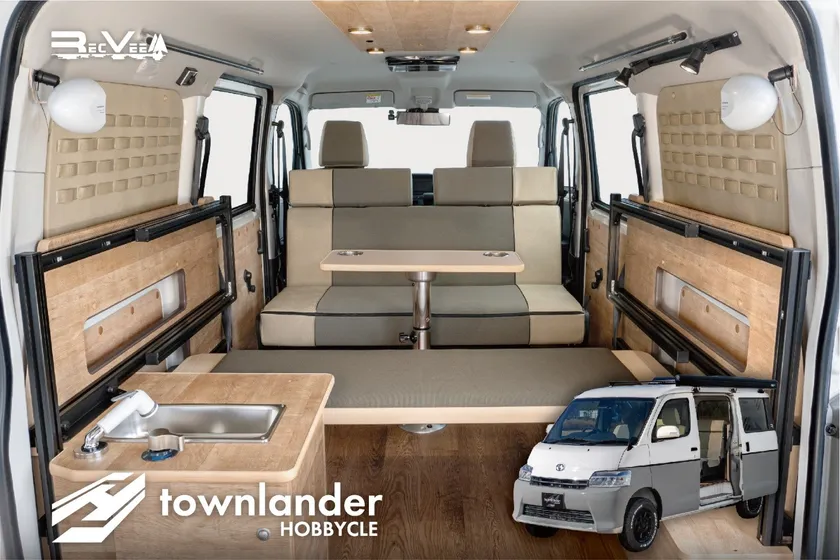 当社のシンプルな車中泊車として人気の「ホビクルオーバーランダー」シリーズのタウンエース版。エントリーモデルとして、拡張性の高いポータブル電源使用を前提とした電装系、上中下段にセットできるベッド、荷物固定用のフック受けつきのラゲッジボードなど、小さいながらも遊ぶための工夫を凝らしたモデルになっています。