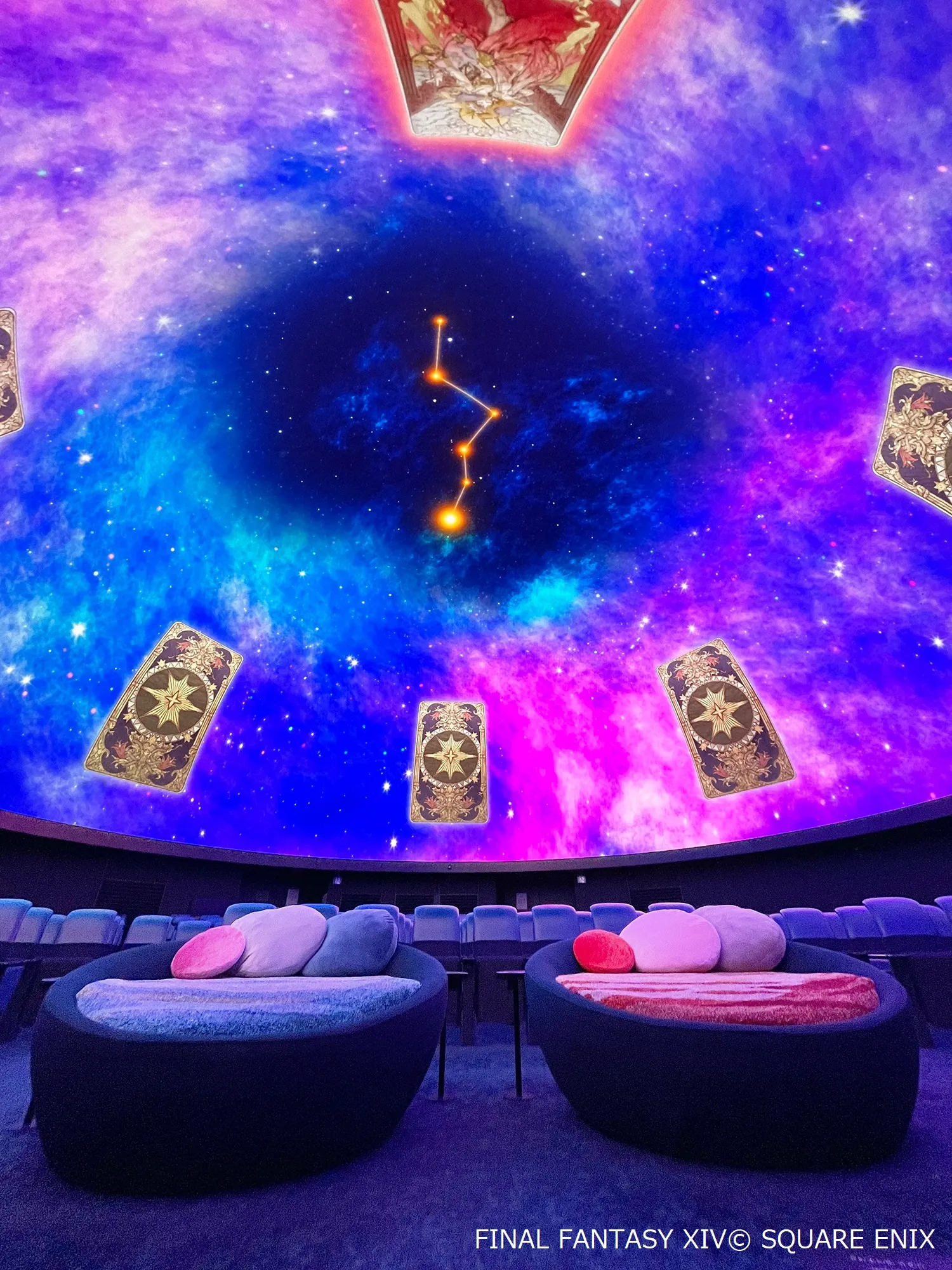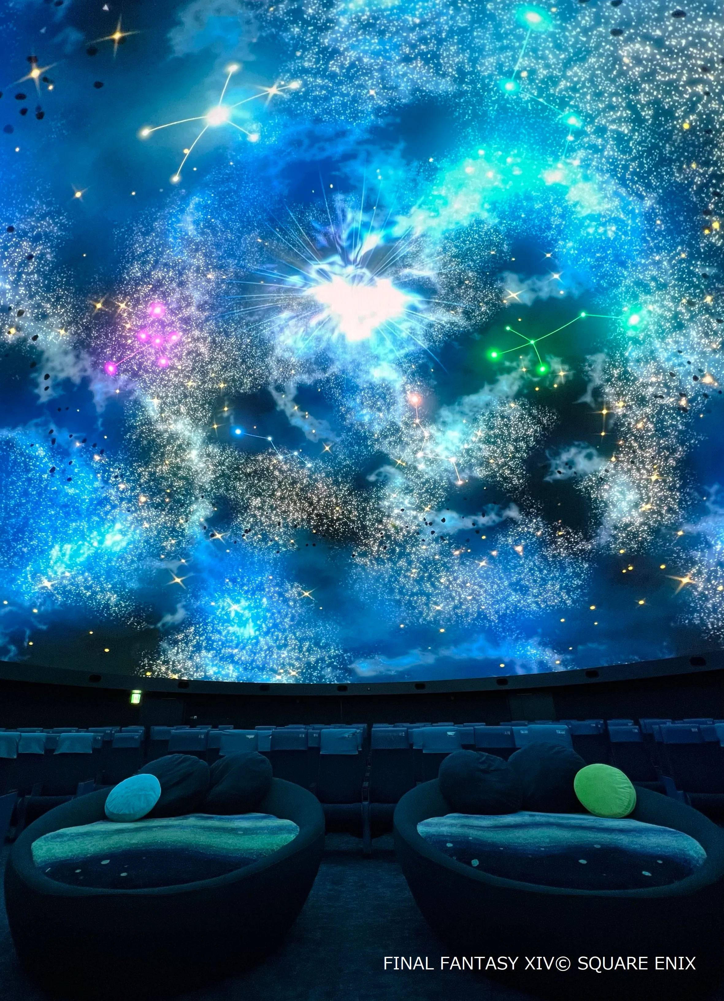 ファイナルファンタジーXIVのゲームや、本作で登場する占星術がモチーフになった映像を、本編の上映前後に投映します。