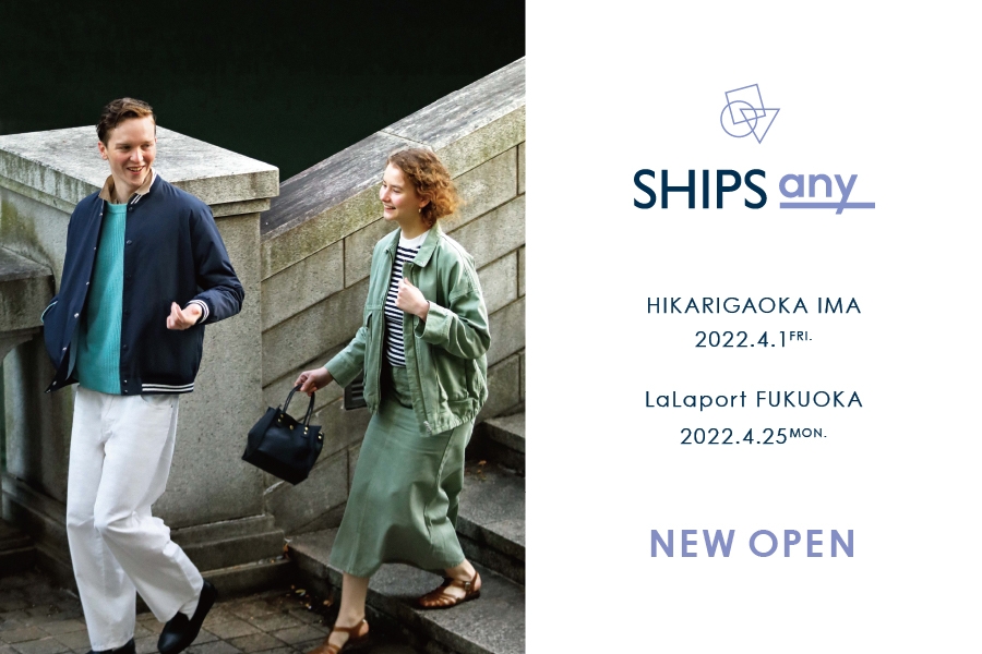 株式会社シップスが運営する、”どんな人にも、どんな場所にも、どんな時にも似合う服”をテーマに、等身大の自分らしさをスタイリングできるブランド、<SHIPS any(シップス エニィ)>は、4月1日(金)に都内4店舗目となる「光が丘IMA」、4月25日(月)には九州地区初となる「三井ショッピングパーク ららぽーと福岡」に新店舗をオープンいたします。