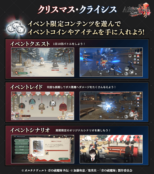 ゲーム『オルタナヴェルト -青の祓魔師 外伝-』期間限定イベント「クリスマス・クライシス」を開始!