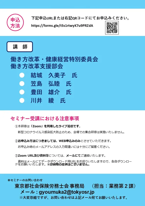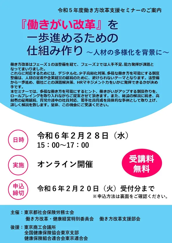 主催 : 東京都社会保険労務士会 働き方改革・健康経営特別委員会