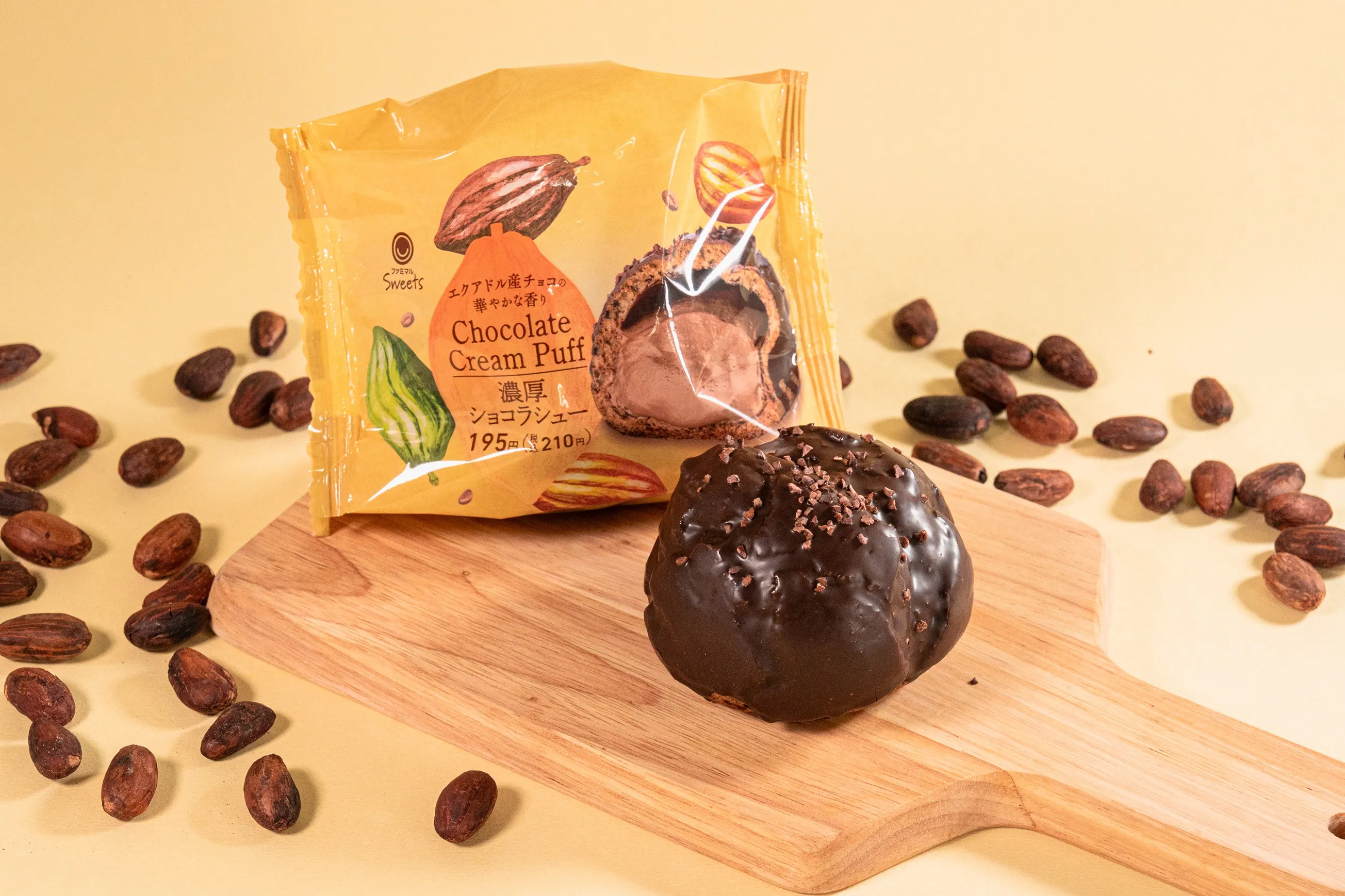 【内容】「エクアドル・スペシャル」を使用したコーティングチョコ、パフ、クリームを組み合わせた贅沢濃厚ショコラシューです。