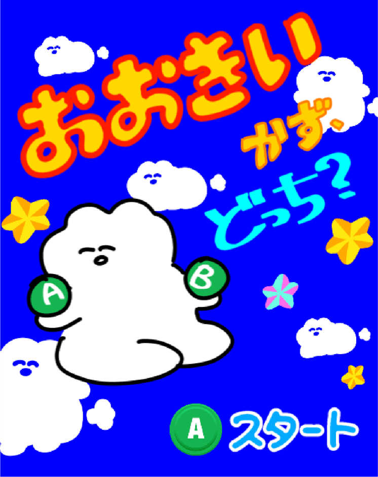 作品概要:AとBのうち、おおきいかずはどっちかな?ながれぼしととおりすがりのみなさんにまけず、めざせ!パーフェクト!