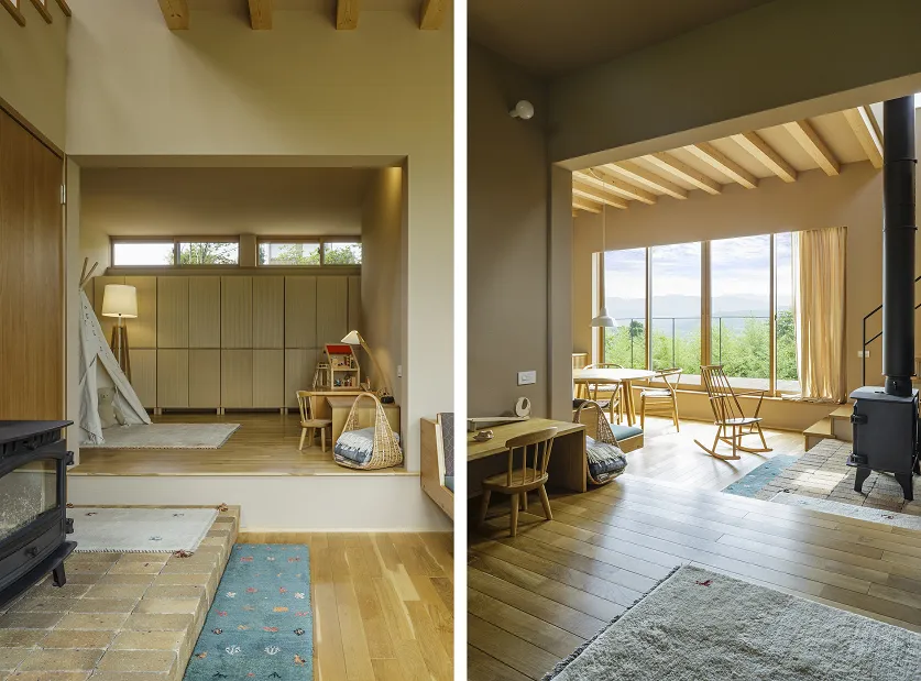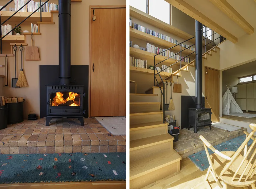 暖かい「薪ストーブ」を中心に、自然も堪能できる住まい。H家族の暮らしには、おこもりしたくなる仕掛けがたくさんありました。
