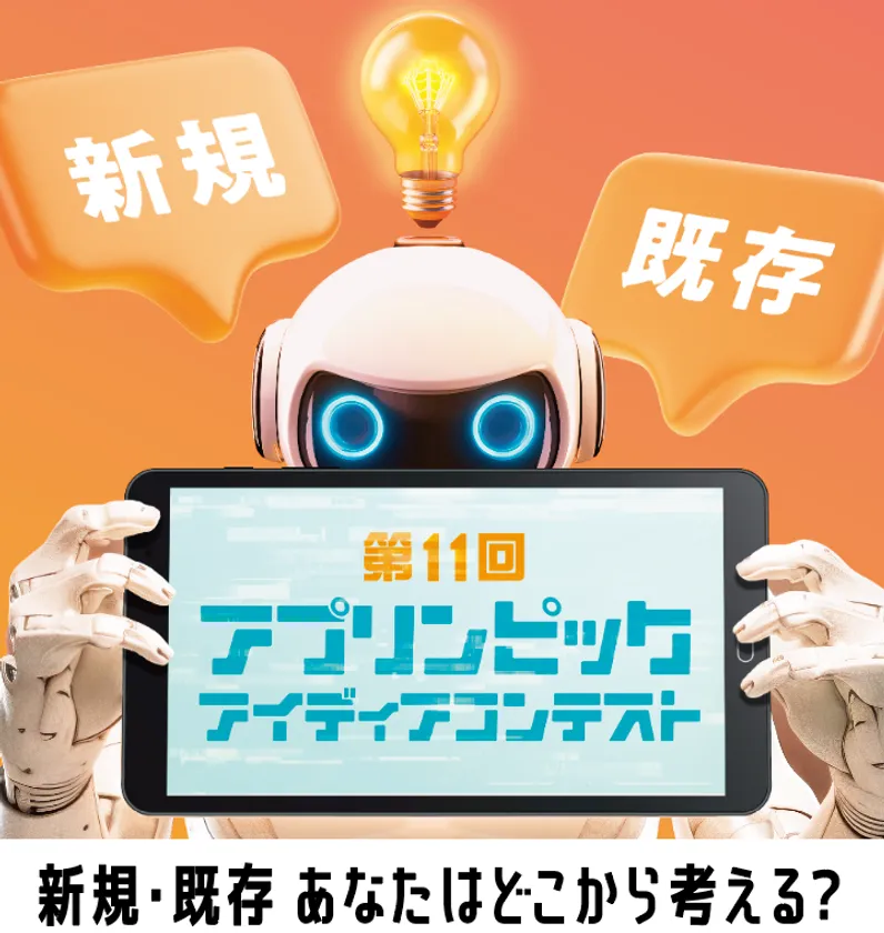今、企業が新たな社会課題へのアプローチを見据える手段として、日常の業務では見えない課題について考える機会が求められています。アプリンピックのテーマは「新規・既存 あなたはどこから考える︖」。アプリンピックでは、アイデアを共有し合い、最先端技術を活用して社会課題に取り組みます。よりアイデアを生み出しやすい環境を目指して、これまでにない新しい事業のアイデアはもちろんのこと、すでに存在している事業を基にしたアイデアも認め、実際に自社で事業化することを目指したアイデアを考えて発表します。