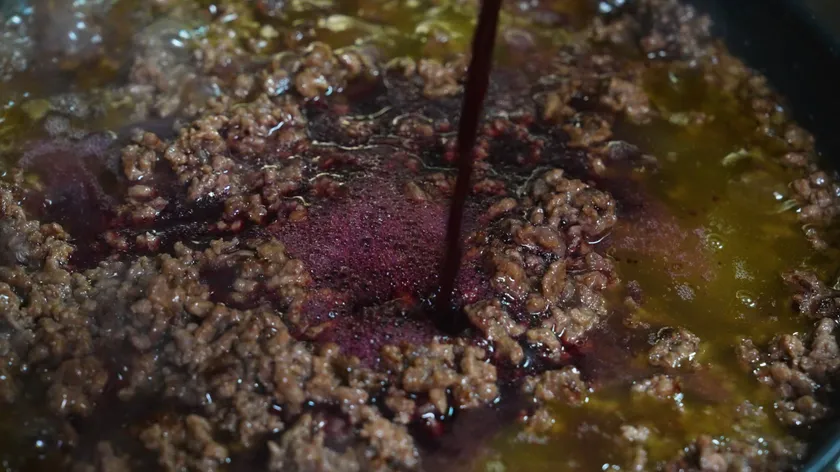 ソフリット(玉ねぎ、にんじん、セロリ、大豆油)、赤ワイン、