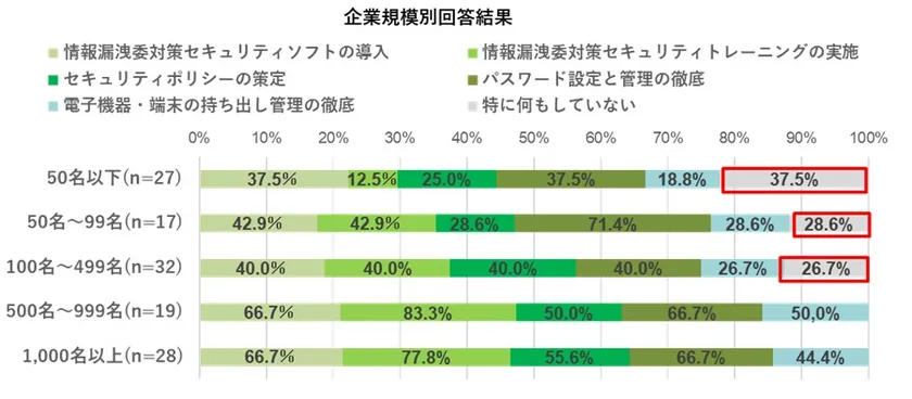 企業規模別でみると、企業規模は小さいほど対策をしていないという傾向があります。