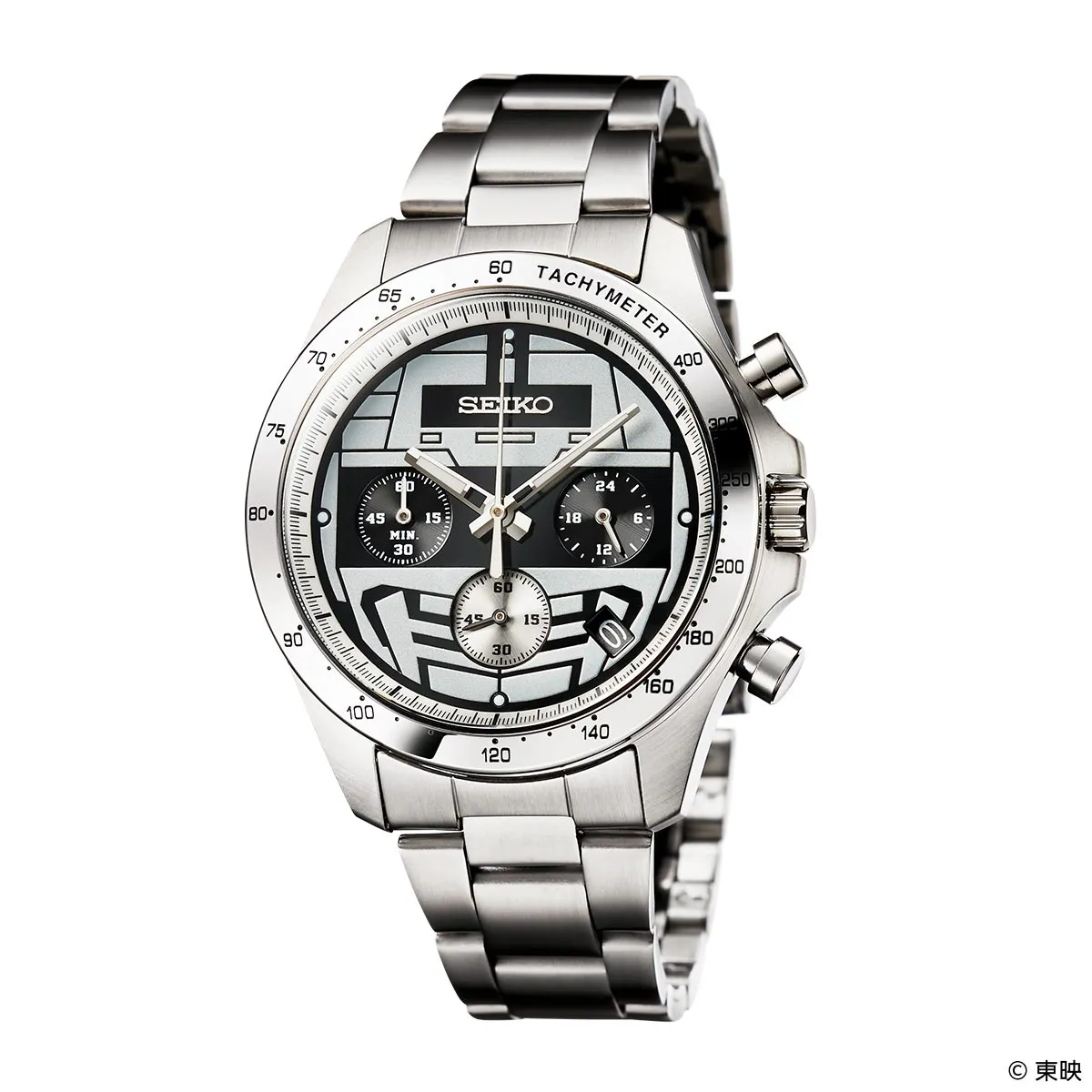 東映特撮ドラマシリーズ「メタルヒーローシリーズ」の輝かしき40周年を記念しておくる、限定のクロノグラフモデル。立体感あるメタルな文字盤は、宇宙刑事シリーズ中、屈指の人気を誇る宇宙刑事ギャバンの光り輝くマスクをイメージ。