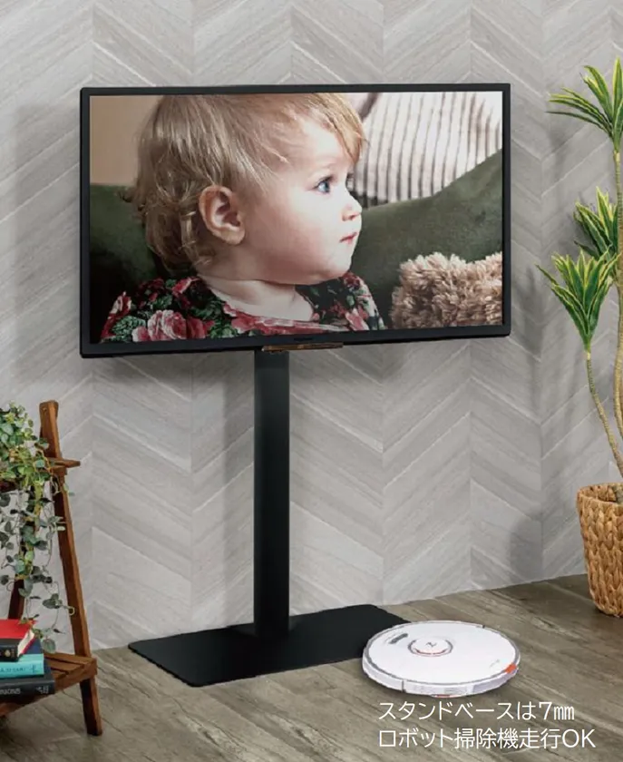 スタンドベースの厚みを1cm以下(約7mm)にすることでスリムでフラットなデザインを実現。また、スイーベル機能でテレビ画面の角度を自由に調整することができます。さらに震度7相当の地震にも耐える耐震性を実現、安心してお使いいただけます。
