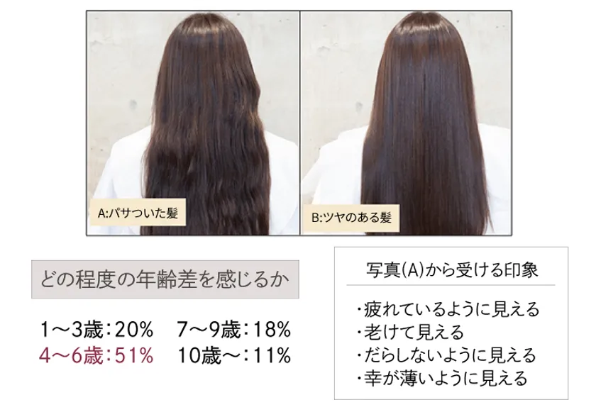 パサつき髪は老けて疲れて見えるという結果に