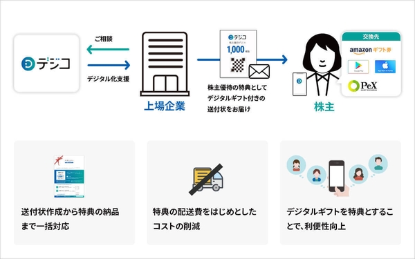 デジタルギフト「デジコ」、上場企業の株主優待サポートサービス「デジコ for 株主優待」の提供を開始