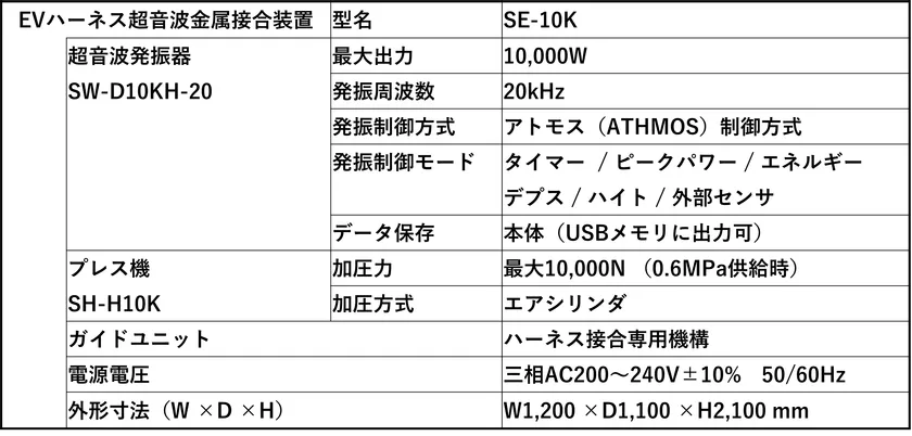 EVハーネス超音波金属接合装置 仕様