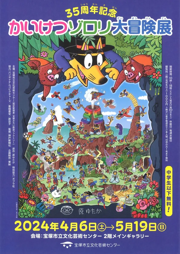 宝塚市立文化芸術センター(所在地:兵庫県宝塚市/館長:加藤義夫)は、児童書『かいけつゾロリ』シリーズ(原作:原ゆたか)の展覧会「35周年記念 かいけつゾロリ大冒険展」を2024年4月6日(土)から5月19日(日)の会期で開催いたします。