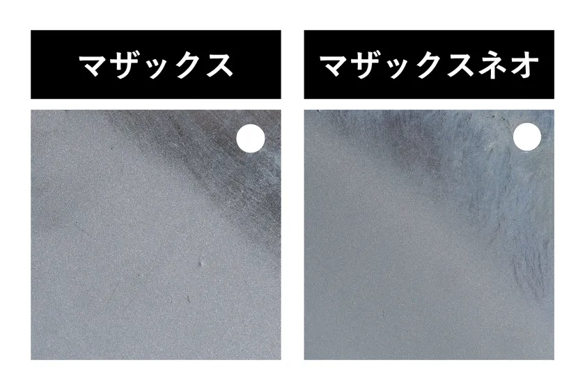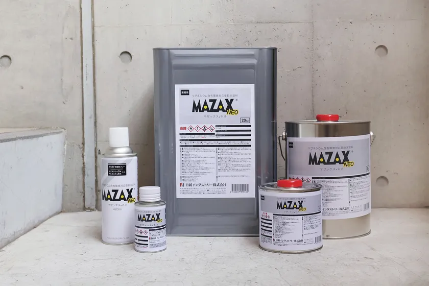 「マザックス(R)ネオ」は、2015年に販売開始した「マザックス(R)」の環境対応型塗料として、新規開発した、乾燥塗膜中にアルミニウム6%、マグネシウム3%を含有する防錆塗料です。