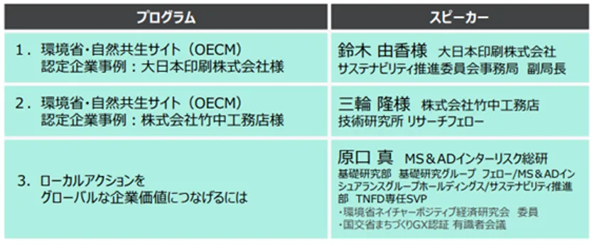 無料オンラインセミナー「ネイチャーポジティブ時代の企業課題」プログラム