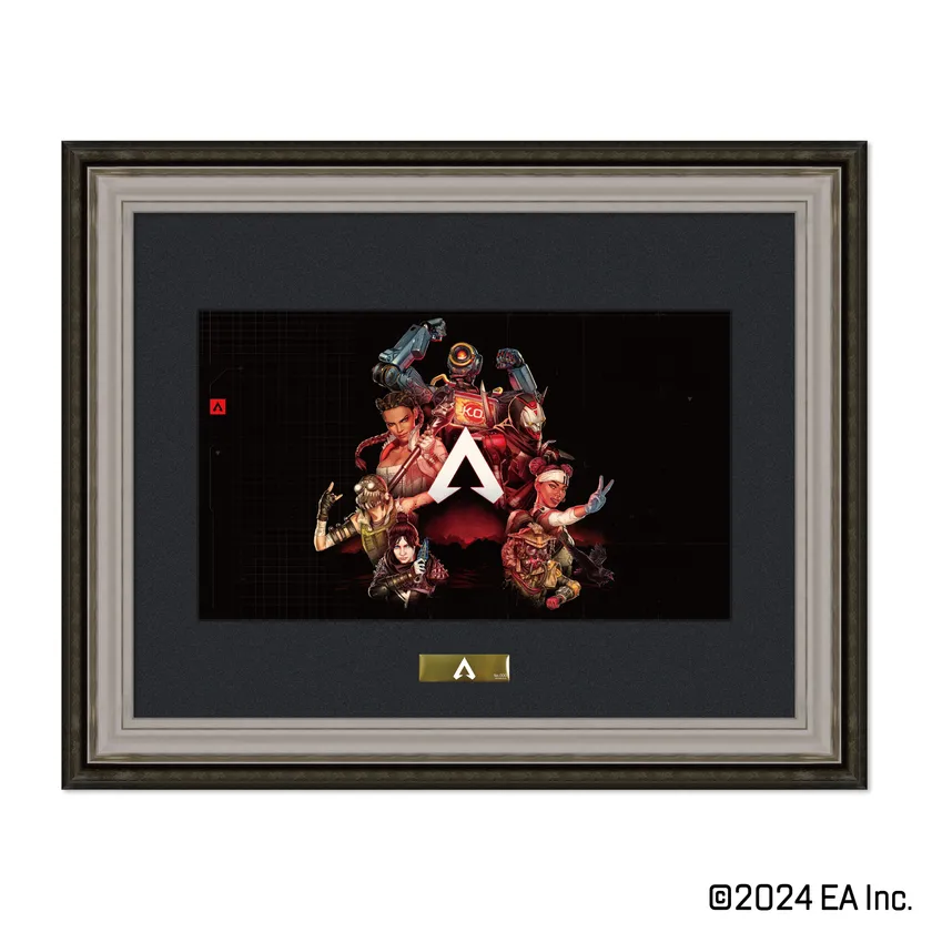 Apex Legends(TM)の5周年を記念して2月9日より開催される「Apex Legends(TM) Museum+POP UP STORE」のキービジュアルを高品位美術印刷で再現した額装入りキャラファイングラフ。