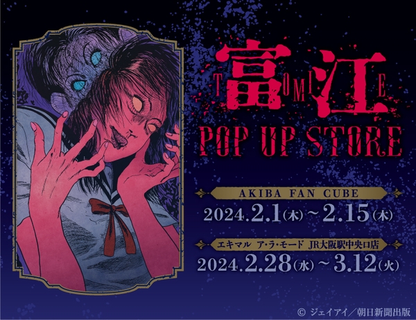 伊藤潤二先生の代表作「富江」のポップアップストアがAKIBA FAN CUBE、エキマル ア・ラ・モードJR大阪駅中央口店で開催決定! チェンジングマグカップやコーチジャケット、入浴剤などのグッズが多数登場!