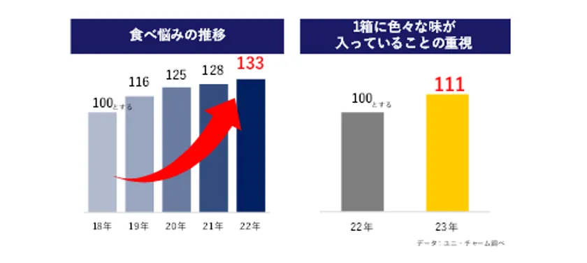 猫用ドライフード市場は年々拡大しています。一方で、同じフードが続くと飽きてしまうという、いわゆる“食べ悩み”が増加しています。このため、飼い主様は食べ飽きないように定期的に味を変えたり、複数の種類を混ぜるなどの工夫をしています。