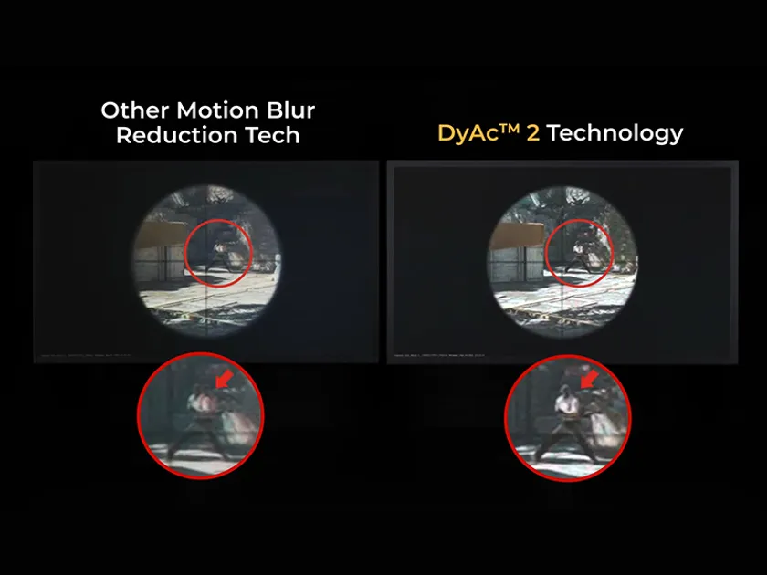 進化したDyAc(TM)2では、デュアルバックライト設計を採用し、バックライトの点灯・点滅のタイミングを調整することで、ゲーム中の激しい画面の揺れを軽減、反動制御を改善することでより正確かつ滑らかな映像表示を実現します。
