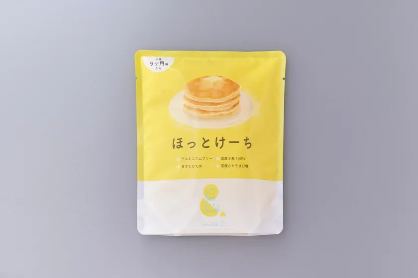 「やさしさいっぱいのものを通じて、子どもとの食の時間をもっと素敵なものにしたい」と、原材料に北海道産の小麦粉を使用し、余計なものを加えず、素材にこだわったホットケーキミックス粉。