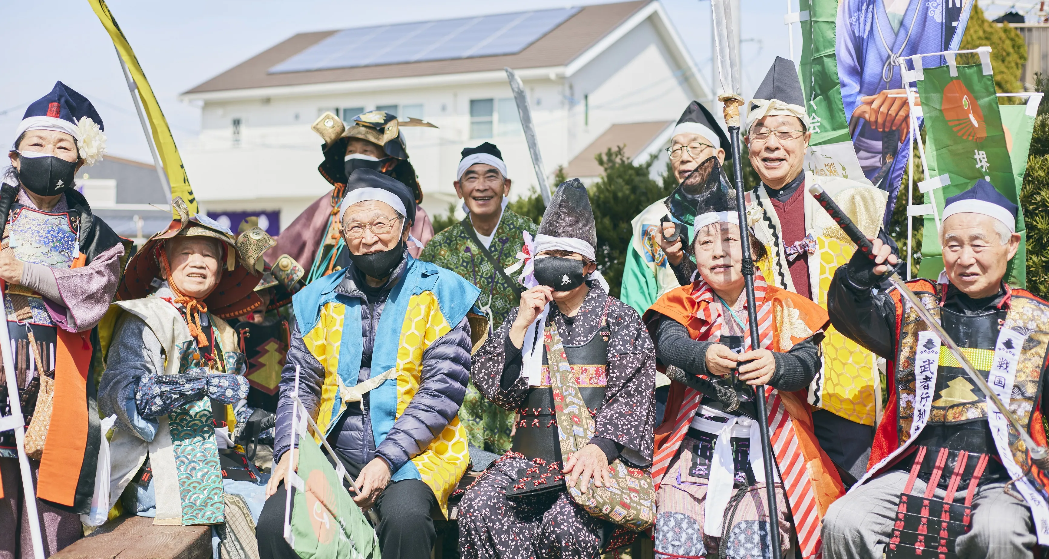 ダブル長慶を先頭に、甲冑や時代衣装などを着た参加者がまちを練り歩き、戦国絵巻さながらの景色を大東市に蘇らせます。
