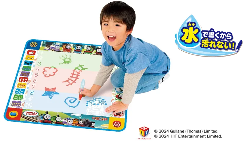 「スイスイおえかき」シリーズに新しく「きかんしゃトーマス3カラーおえかき&すうじ」が登場しました。お水のペンで書くので汚れることもなく、乾くと消えるので繰り返しおえかきが楽しめます。シートのトーマスをなぞると、トーマスが出現。イラストの数字をなぞり書きすることで、数字覚えができます。人間工学に基づいた形状の持ちやすいペンを付属。くぼみに親指がくるように持つことでおえかきしながら正しいペンの持ち方を身に付きます。トーマスとなかまたちと一緒に楽しくおえかきしてみてくださいね。