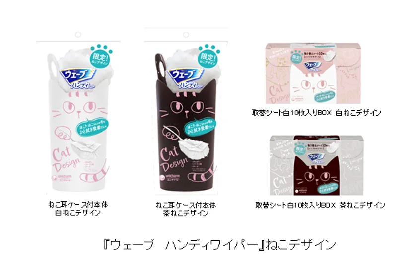 そこでこのたび、ひと拭きで簡単に吸着できる「ウェーブ」から、幅広い層で人気の「ねこ」をモチーフに採用したデザインを期間限定品として発売します。