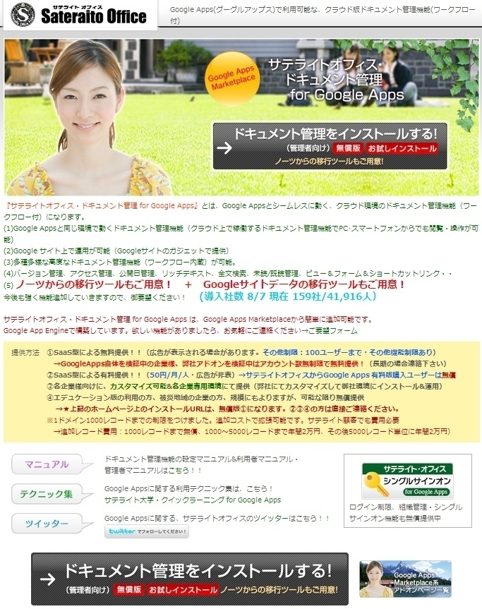 <サテライトオフィス・ドキュメント管理 for Google Apps に関するURL>