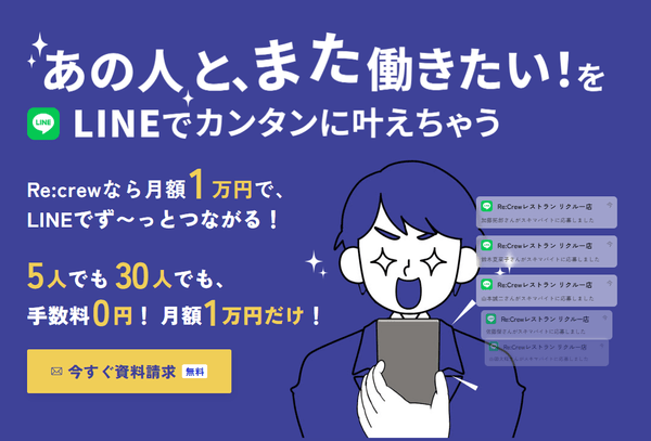 スポット人材の"使い捨て"解消へ—スキマバイト経験者をLINEでつなぎ直す再雇用特化サービス「Re:crew」正式リリース