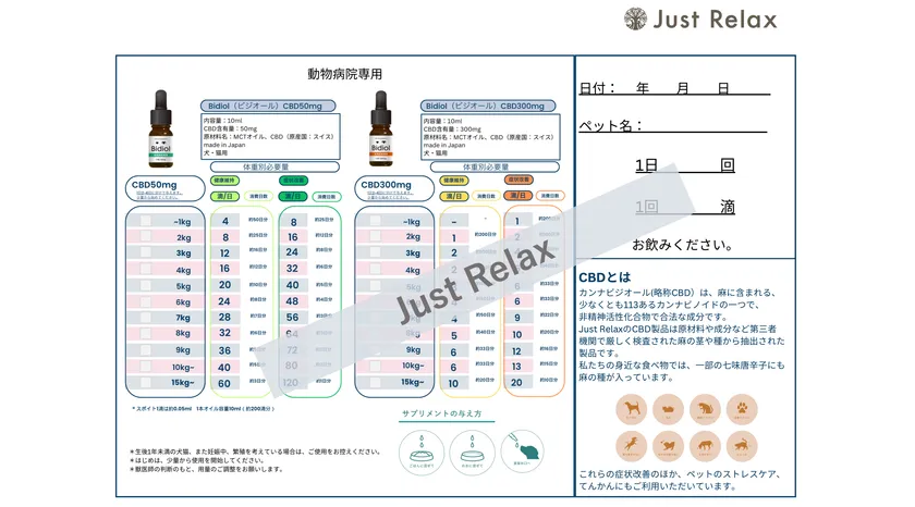 高品質ペット用CBDオイルが特徴のJustRelaxから 動物病院専用Bidiol(ビジオール)を3月1日発売!
