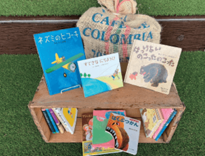 区内の協力施設にある、誰もがいつでも身近に本に触れられる「街なか図書館」が臨時出店!初めての屋外開催です。