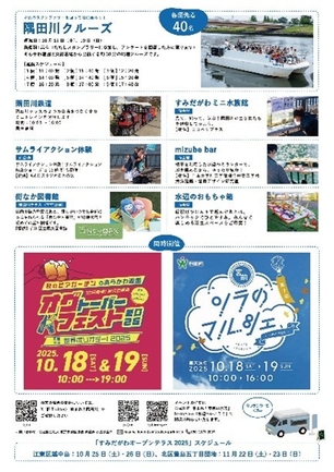水辺の魅力を満喫できるイベント「すみだがわオープンテラス2025」が、2つの会場でそれぞれ2日間開催されます!