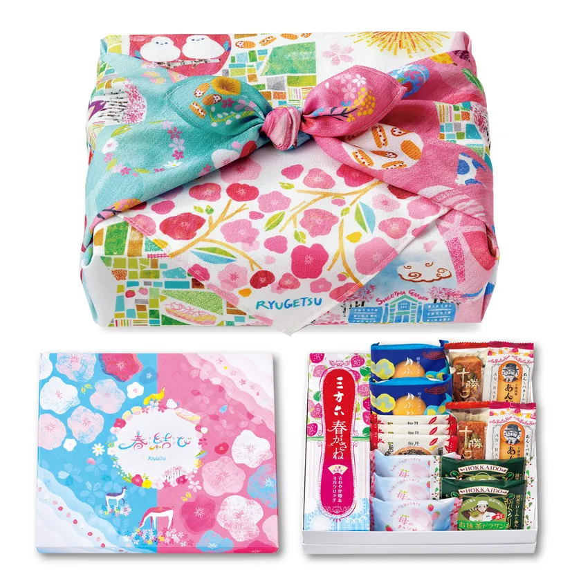 北海道の老舗和洋菓子屋・柳月より春爛漫のおくりもの 特製ふろしき付きスイーツ詰め合わせ「春結び」2月15日発売
