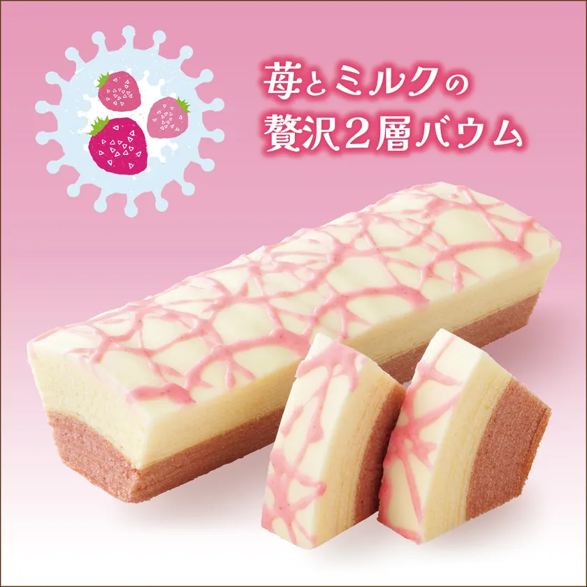 苺とミルクが美味しく溶け合う、春限定のクリーミーなバウムクーヘン。