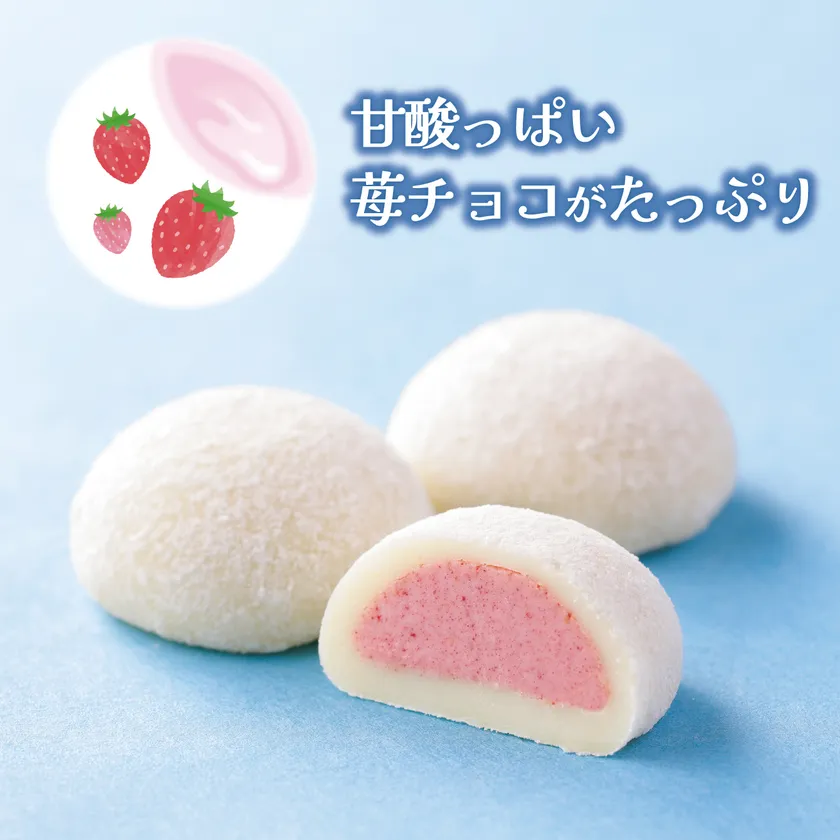モチモチのホワイトチョコ餅に、甘酸っぱい苺チョコがたっぷり。