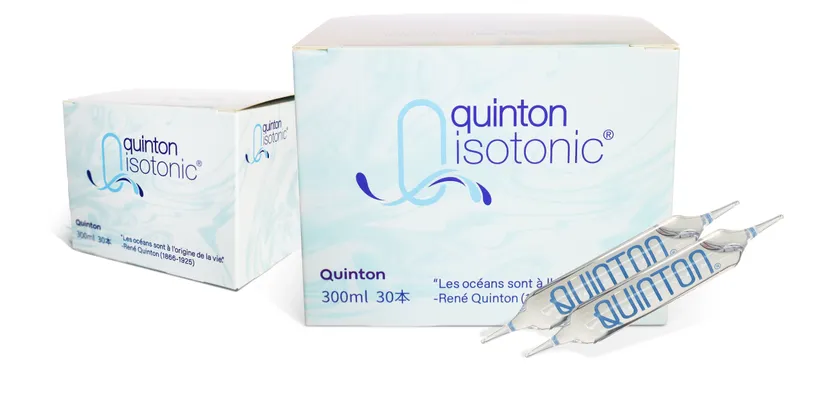 ヒト細胞外マトリックスに適合するようにシリカが豊富な湧き水によって血液と等張濃度に希釈されており、血液に適合するようにミネラルバランスを整えた海水です。キントンアイソトニックは免疫調整をサポートする機能を持ち花粉症に効果的な製品です。また脱水による免疫亢進状態を改善する効果も期待できます。