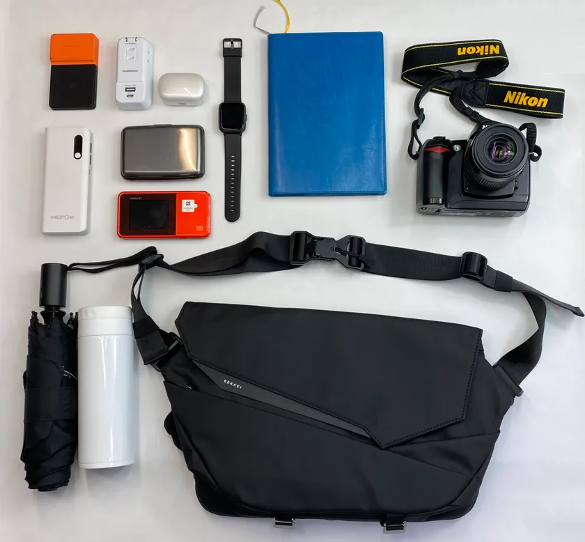 プロジェクト名: 拡張するスリングバッグMacBook Air 一眼レフカメラを収納できる!