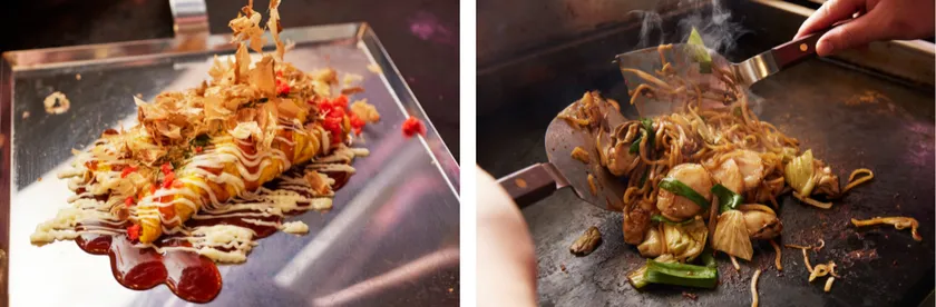 とん平焼き(770円税込)/海鮮焼きそば(1,650円税込)