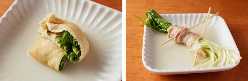 こと京都九条ネギ爆弾(385円税込)/豚バラハリハリ(550円税込)