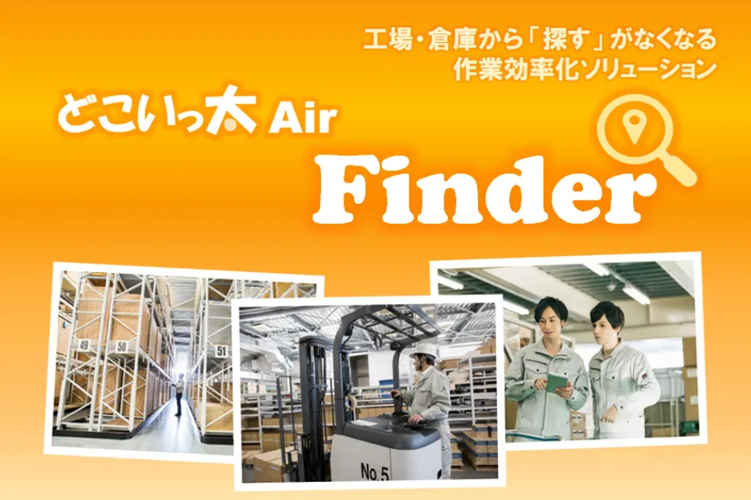 『どこいっ太Air Finder』は、工場や倉庫の中で行っている「探す」行為にかかる時間を大幅に短縮するためのソリューションです。現在使っている製造番号や商品コードをそのまま活用した柔軟で簡単な「置き場所探索」をご提供します。