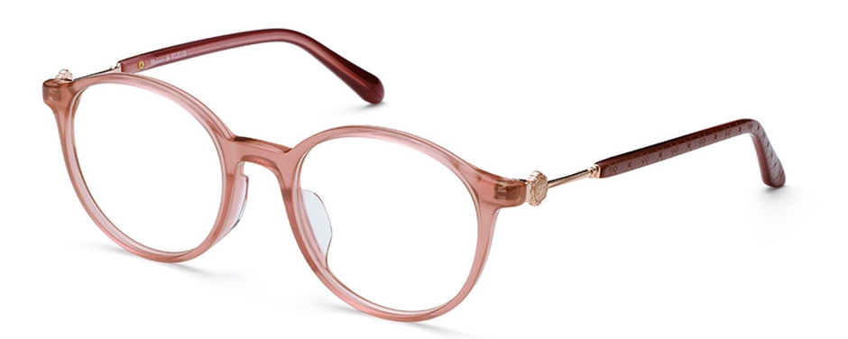 フロントがプラスチック、つるがメタルのコンビネーションフレーム。目元のアンティーク調のモチーフが、上品さをプラスしてくれます。つるの長モダンには、リボンとローズのモノグラム柄をプリントしています。