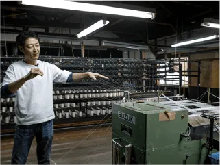 工場ではたて糸・よこ糸作りから生地を織る機場まで、一通りの工程をご案内。