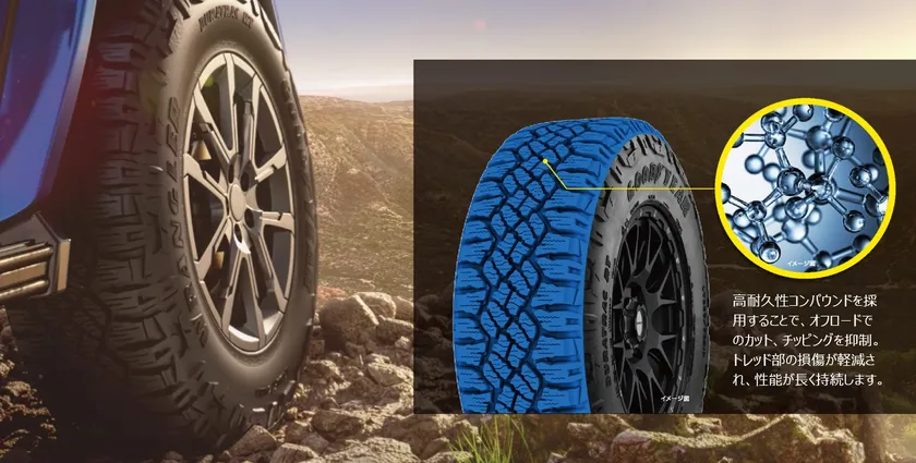 日本グッドイヤー株式会社(代表取締役社長 金原雄次郎、以下グッドイヤー)は2024年3月1日より、オンロードでの機敏性とオフロードでの走破性を高次元で両立させたラギッドテレーンタイヤ「WRANGLER DURATRAC RT(ラングラー デュラトラック アールティー)」を発売します(全14サイズ、オープン価格)。