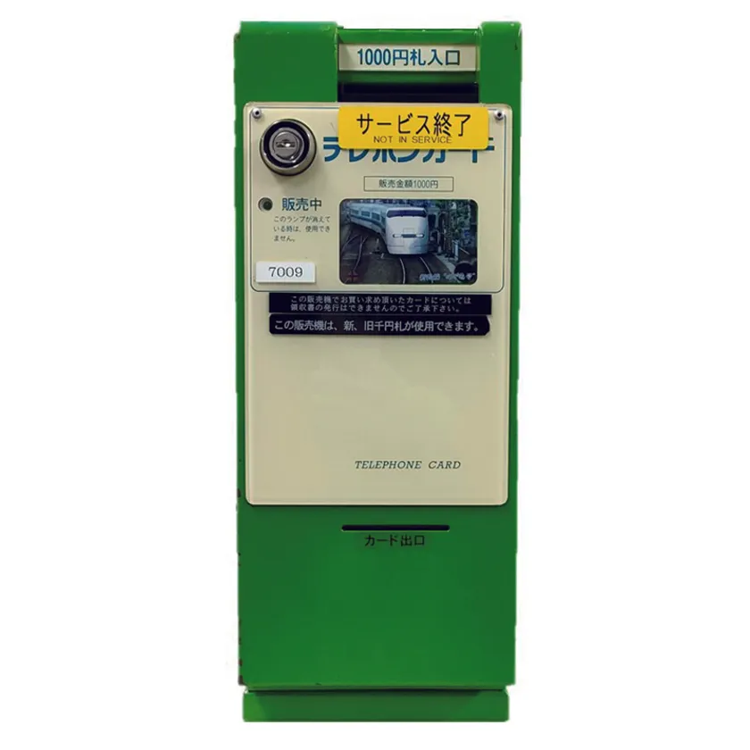 新幹線の車内に設置されていたテレホンカード自動販売機を販売! 懐かしのテレホンカードのレプリカも付いてくる!