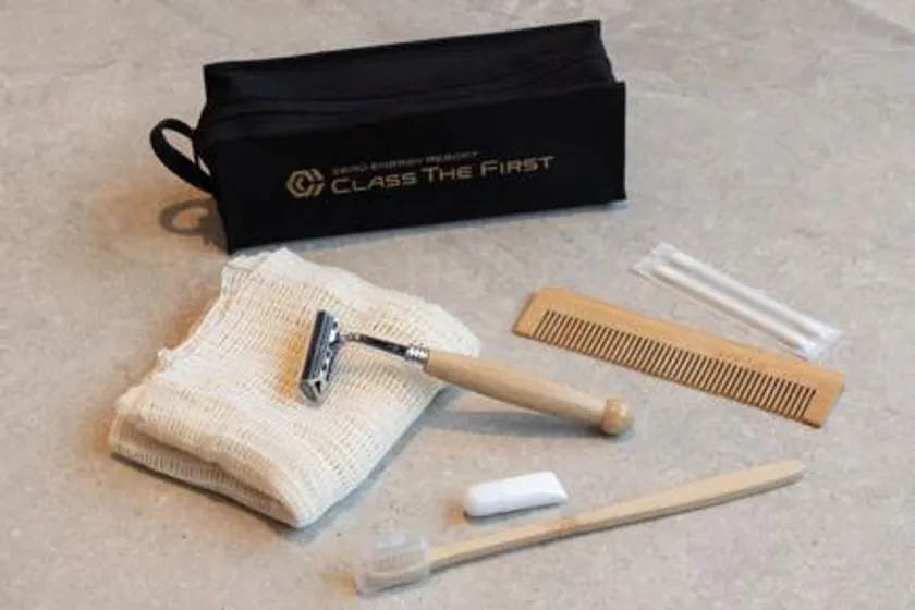 オーガニック素材のアメニティ、リサイクル原料の食器、割れない素材のグラスを使用。冷蔵庫内のドリンクは無料でご提供しております。