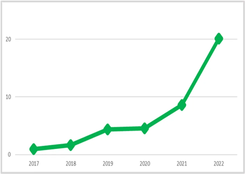 〇近年保険金が急増傾向、2021年度は4年前と比べて4倍弱の水準に