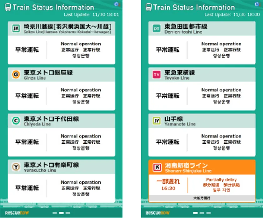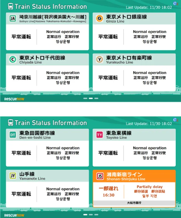 ※多言語対応版では詳細運行情報は表示されません。遅延等発生時は対象区間が表示されます。