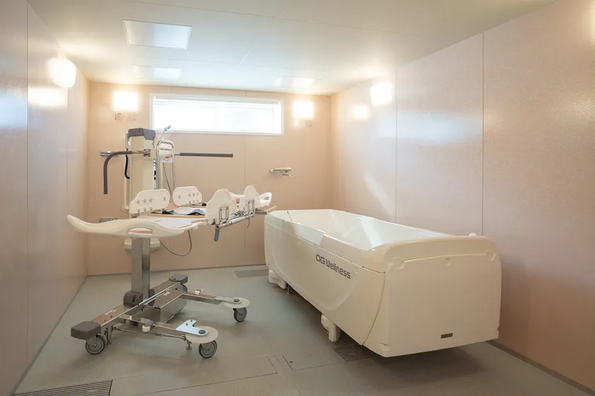 大分市内でも数少ない看護小規模多機能型居宅介護を併設しており、医療ニーズの高い方でも安心した在宅生活を送ることができます。例えば、病院退院直後の在宅生活が安定しない間、看護小規模多機能の利用をして、在宅生活の準備を整えたのち看護小規模多機能型居宅介護を『卒業』し、そのまま「やさしえ鶴崎」に入居することで、安心して在宅生活を送っていただけます。病院から在宅へと、スムーズに在宅に移行することができます。
